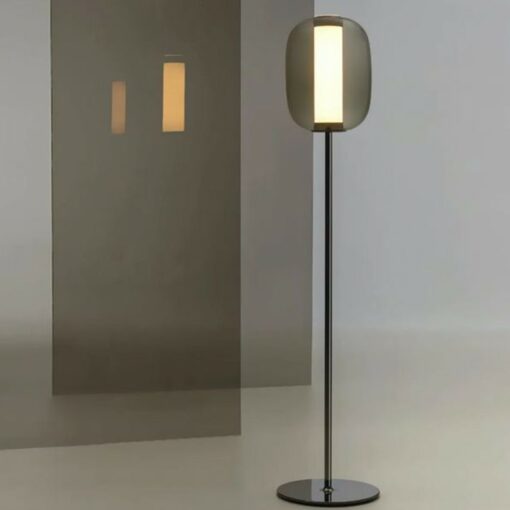 Lampada da terra con stelo e base in metallo galvanizzato e diffusore in vetro soffiato
