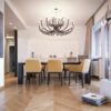 Lampada a sospensione che richiama gli antichi fasti dei lampadari a candelabro