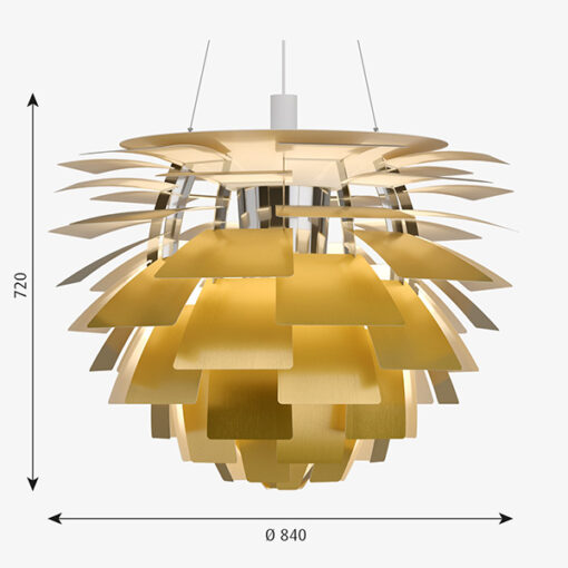 Materiale: Lamine: ottone taglio laser, rame, acciaio inossidabile o acciaio. Schermo superiore: bianco o nero, acciaio tirato, bianco sulla parte inferiore. Telaio: cromato lucido, acciaio taglio laser. Sospensione: cromato lucido placcato, alluminio tirato.